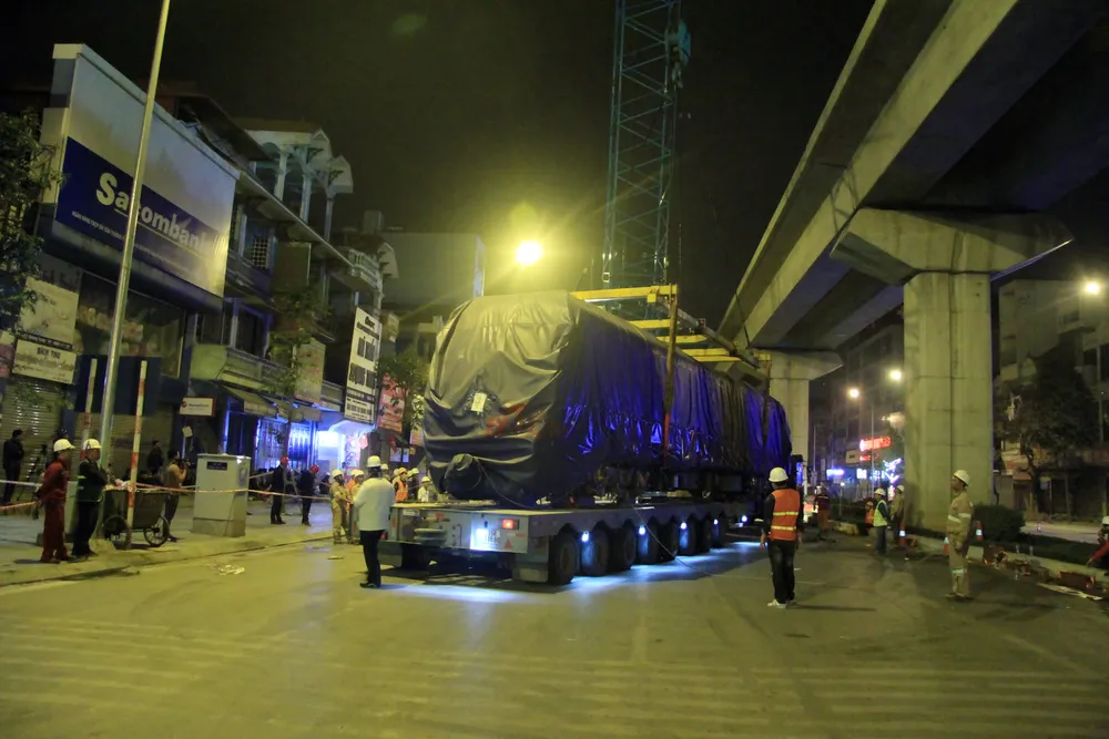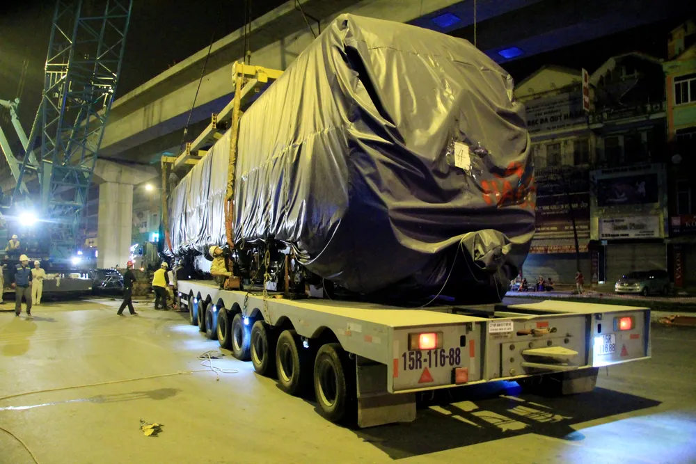 Trước đó, hôm 19-2 vào khoảng 2 giờ sáng, lô tàu gồm bốn đầu máy, toa xe phủ bạt được bốn chiếc xe đầu kéo vận chuyển về tới Hà Nội.