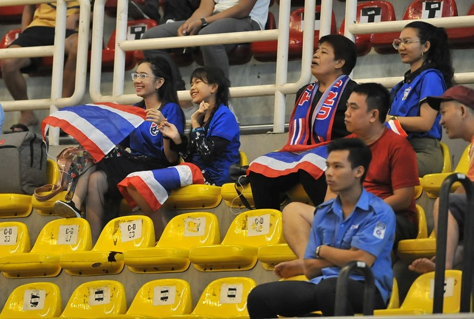 Nhóm cổ động viên ít ỏi của Thái Lan ở nhà thi đấu Phú Thọ.