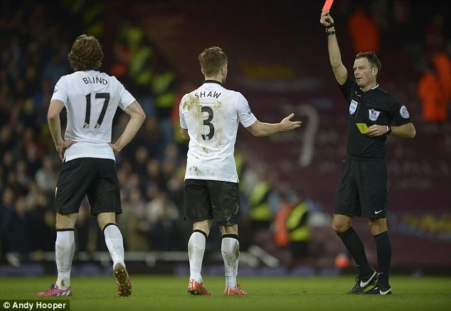 Trọng tài Clattenburg đuổi Luke Shaw ở trận hòa West Ham 1-1