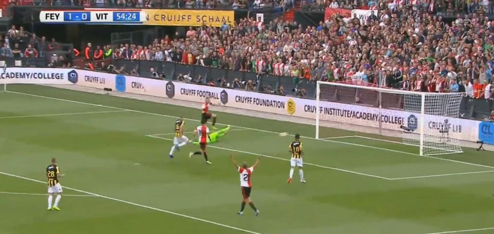 Từ đợt phản công nhanh này, Nicolai Jorgensen đã ghi bàn thắng thứ hai cho Feyenoord. Lúc này, các cầu thủ và BHL CLB Vitesse phản đối quyết liệt quyết định của trọng tài. Họ cho rằng, lẽ ra Vitesse phải được hưởng quả đá phạt 11m trước khi Jorgensen ghi bàn cho Feyenoord.