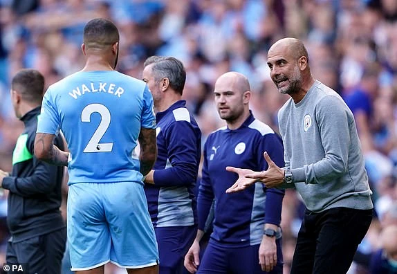 Pep Guardiola chỉ đạo rất nhiệt nhưng các học trò vẫn chơi như mơ ngủ. ẢNH: PA