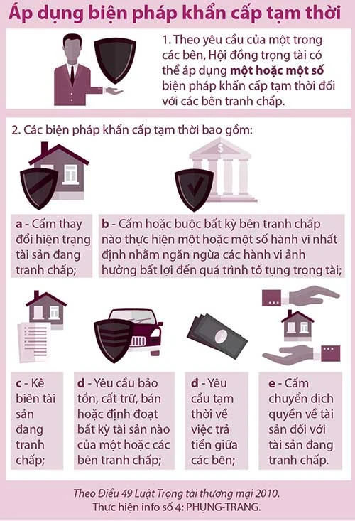 Trọng tài thương mại (TTTM) là phương thức giải quyết tranh chấp do các bên thỏa thuận và được tiến hành theo Luật TTTM. Vấn đề nhiều người quan tâm là trong tố tụng trọng tài các bên có quyền yêu cầu áp dụng biện pháp khẩn cấp tạm thời (ADBPKCTT) là kê biên tài sản và một số vấn đề khác, hay không?