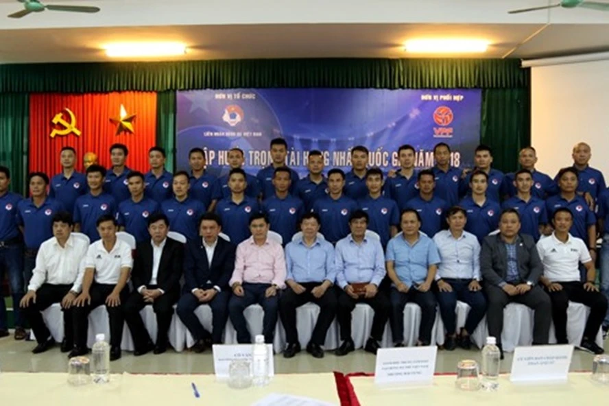 Các quan chức VFF và VPF trong ngày tập huấn trọng tài giải hạng nhất quốc gia. Ảnh: VFF