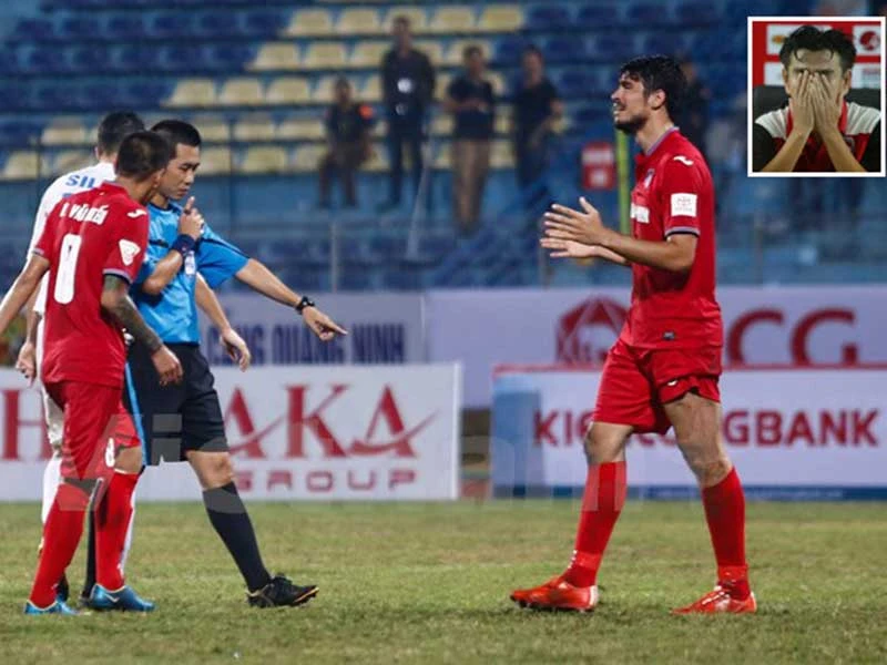 Một sai lầm khủng khiếp mà cả làng bóng thắc mắc không biết vì sao trọng tài Đức Vũ lại chuyển lỗi nhanh đến thế khi từ nhận định đúng “bẻ” sang thành nhận định sai, bất chấp phản ứng của cả đội khách như than khóc với trọng tài này.