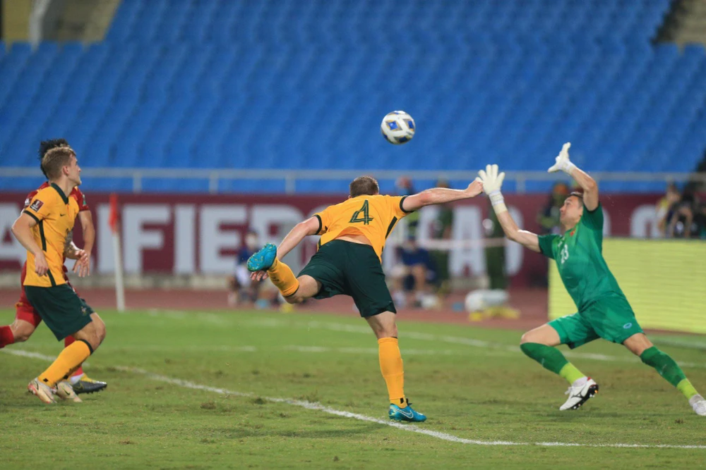 Tuyển Úc có những ưu điểm vượt trội chủ sân Mỹ Đình nhưng không ngờ có trận thắng khó chỉ 1-0. Ảnh: ANH THỎA.