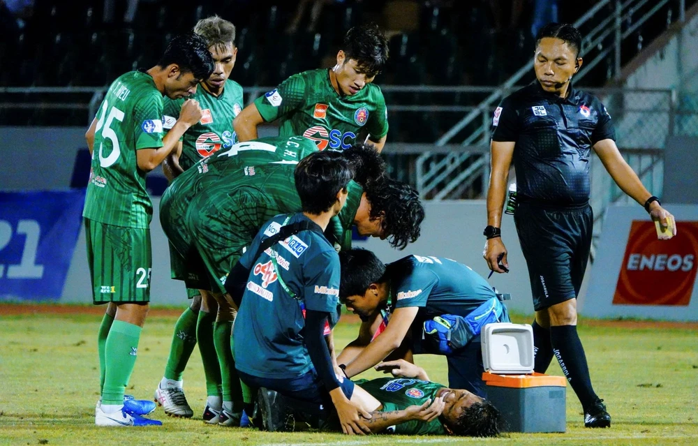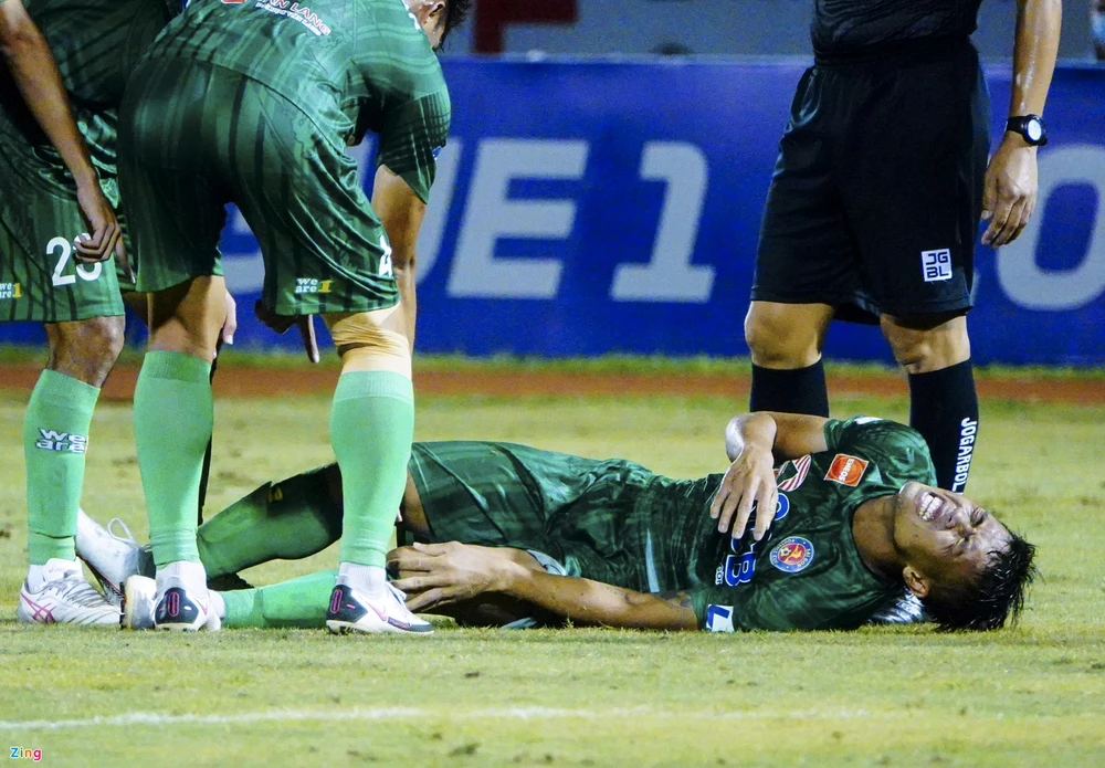 Công Thành đau đớn trên sân.