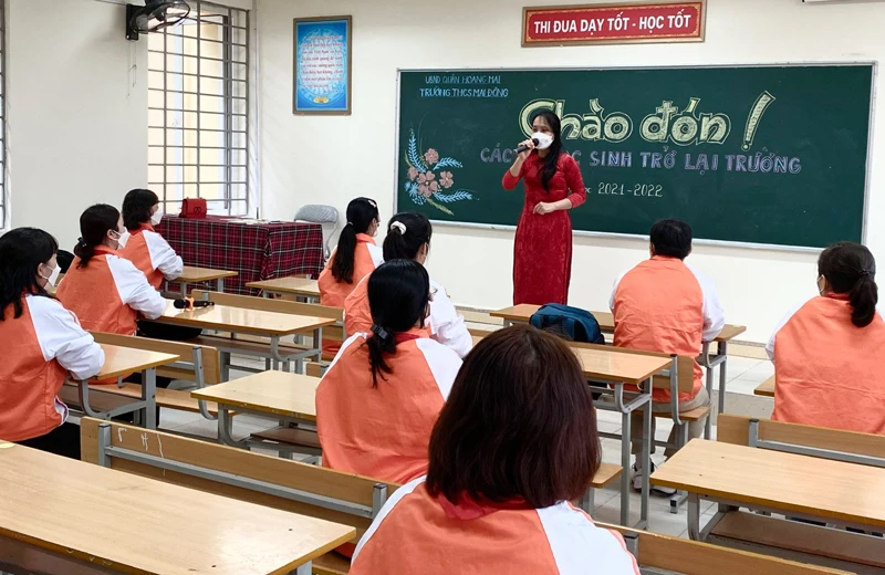 Sau gần 1 năm học online, Hà Nội cho học sinh trở lại trường theo lộ trình trong tháng 2-2022.