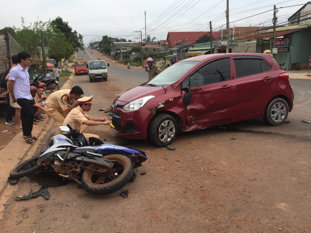 Khi đến đoạn khu phố Tân Trà (phường Tân Xuân, TP Đồng Xoài) thì họ va chạm mạnh với ô tô 93A-169.02 đang quay đầu.