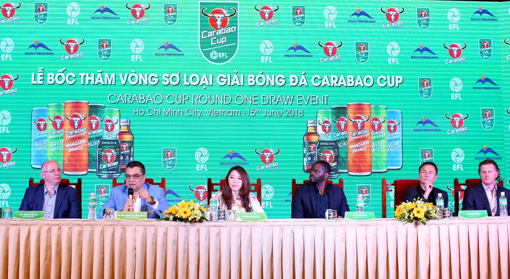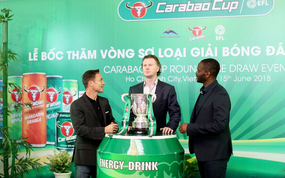 Việc bốc thăm Cúp Liên đoàn Anh - Carabao Cup bất ngờ diễn ra tại TP.HCM là thông qua công ty phân phối độc quyền sản phẩm Carabao của Công ty TNHH TM Ngọc Thiên Bảo.