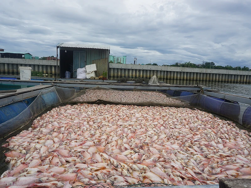 Hiện, gia đình ông Mười phải bán rẻ số cá này cho các thương lai để làm thức ăn gia súc với giá 40.000 đồng/kg với hy vọng có thể thu lại một khoảng tiền cũng như để khỏi ảnh hưởng đến môi trường.