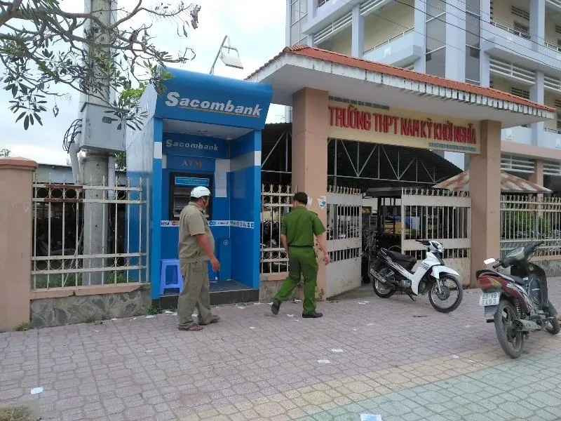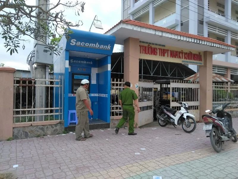 Theo người dân, khoảng 6 giờ sáng, nhiều học sinh ở Trường THPT Nam Kỳ Khởi Nghĩa (tọa lạc trên địa bàn ấp Cá, thị trấn Tân Hiệp, huyện Châu Thành, tỉnh Tiền Giang) nhìn thấy cửa cuốn phía sau trụ ATM Sacombank đặt ở phía hông trường Nam Kỳ Khởi Nghĩa bị hở khoảng 40 cm.