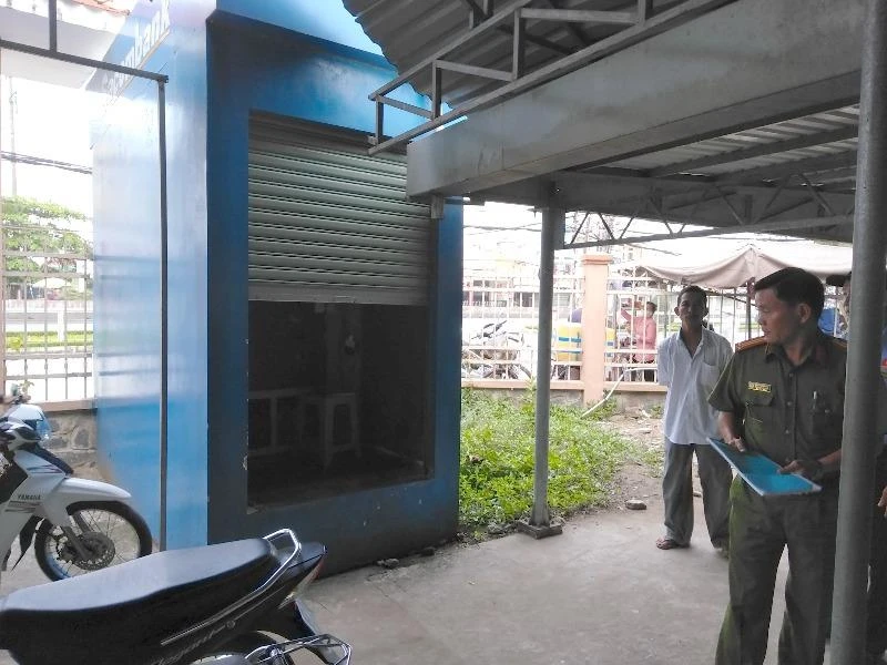 Đường dây điện từ trụ cột điện dẫn vào trụ ATM có dấu hiệu bị cắt đứt. Tủ sắt phía bên trong trụ ATM chưa có dấu hiệu bị cạy, mở. Bên ngoài mặt tiền trụ ATM có một ghế nhựa còn mới và hai ổ khóa nằm khuất trong bụi cỏ bên hông trụ ATM…