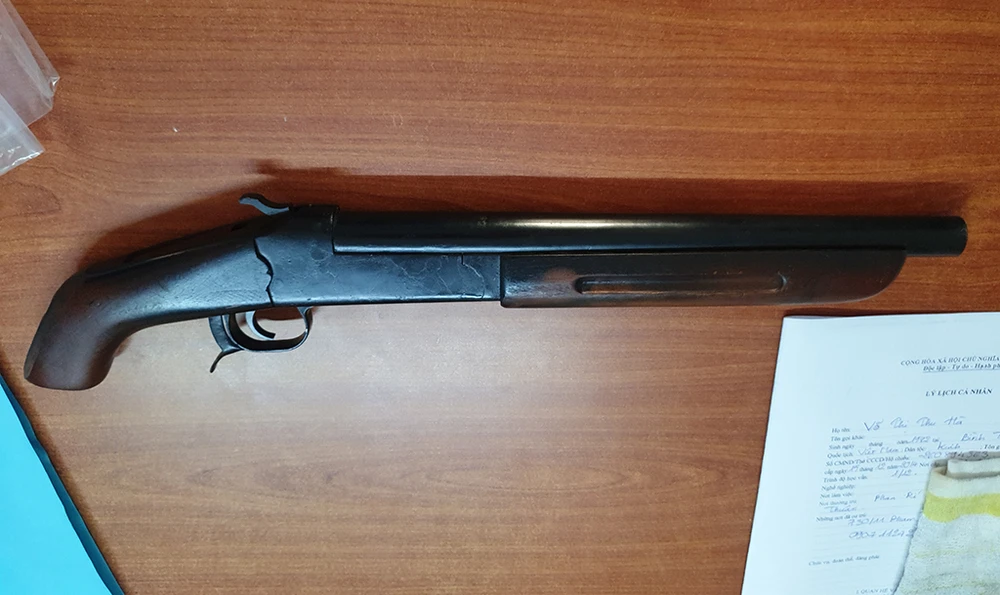 Khẩu súng sau đó được công an thu giữ để giám định, làm rõ. Ảnh: NT