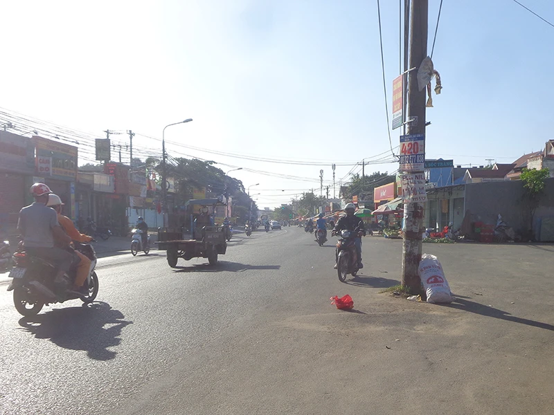 Trụ điện này còn nằm ngay đoạn rẽ vào trạm xăng dầu nên không đảm bảo an toàn cho người và phương tiện lưu thông trên đường.