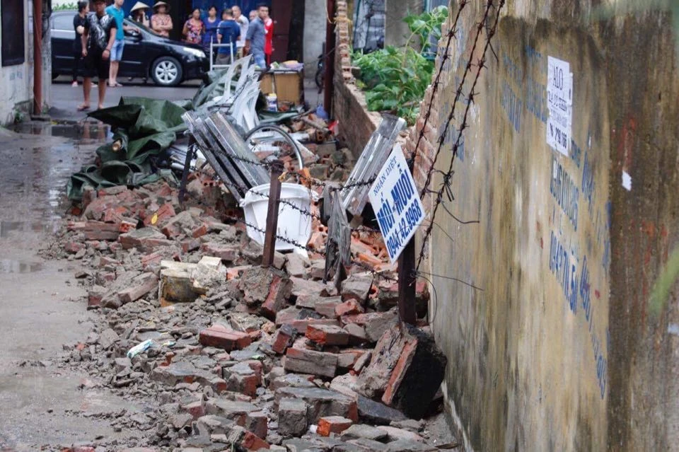 Đang men theo bức tường bao để tránh mưa thì bất ngờ bức tường gạch cao hơn 2m, dài khoảng 30m dọc theo con ngõ đổ ập xuống, vùi lấp hai anh em trong đống gạch.