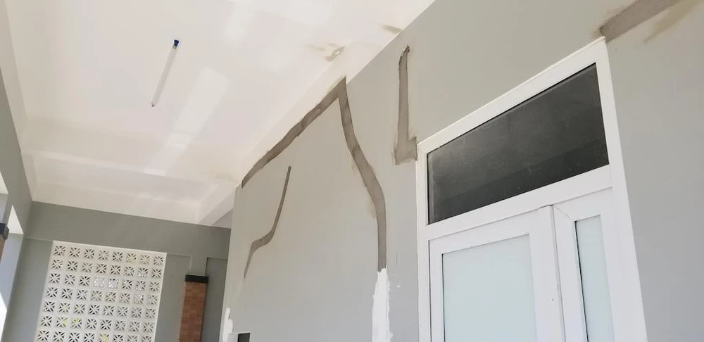 Tại các điểm xảy ra tình trạng nứt tường, công nhân đã trám bằng cách cắt tường chạy dọc theo vết nứt và trám vữa vào trong. Một số vị trí đã được phủ sơn che đi vệt trám vữa. Nhiều điểm chưa kịp sơn lại trông rất mất thẩm mĩ.