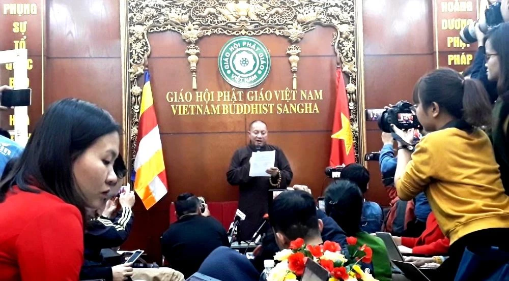 Đại diện Giáo hội Phật giáo Việt Nam đọc kết luận của Ban thường trực Hội đồng Trị sự.