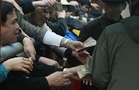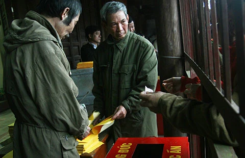 Ấn đền Trần phát không nhưng muốn được phát phải gửi tiền công đức. Ảnh: V.THỊNH