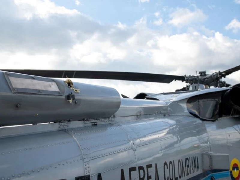 Một lổ thủng trên vỏ trực thăng của Tổng thống Colombia Ivan Duque. Ảnh: REUTERS