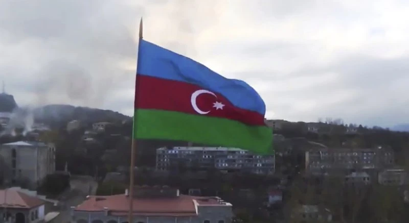Quốc kỳ Azerbaijan bay trên một tòa nhà tại khu vực ly khai Nagorno-Karabakh, ngày 9-11. Ảnh: AP