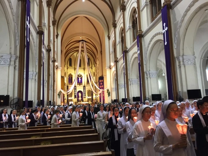 Từ 19 giờ, nội vi Nhà thờ chính toà Đức Bà Sài Gòn chỉ dành cho các tu sĩ.