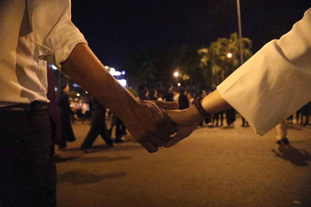 Giáo dân nắm tay làm hàng rào quanh nhà thờ.