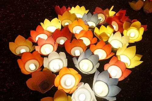 Hoa đăng được chuẩn bị để thả cầu nguyện cho linh hồn người đã mất được yên nghỉ. Ảnh: PHI HÙNG