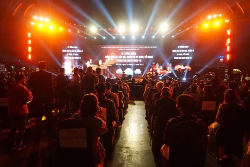 Hàng trăm đại biểu, đại diện các gia đình có người thân đã mất do dịch, các bạn trẻ, người dân đã đến điểm cầu để thành kính tưởng niệm đồng bào đã mất trong đại dịch.