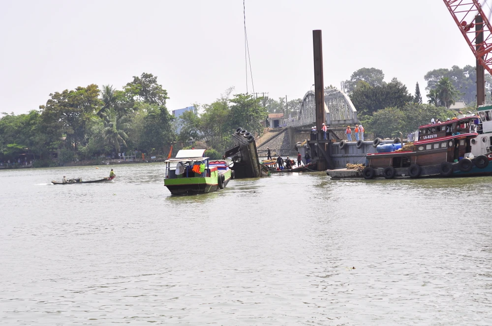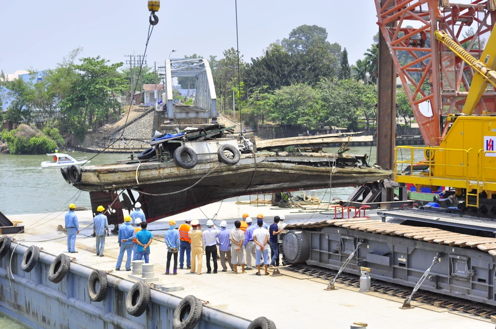 Khoảng 11 giờ ngày 30-3, đội trục vớt cầu Ghềnh thuộc Công ty Xây dựng công trình giao thông 1 (Bộ GTVT) đã tiến hành trục vớt thành công tàu đẩy sà lan đâm sập cầu Ghềnh.