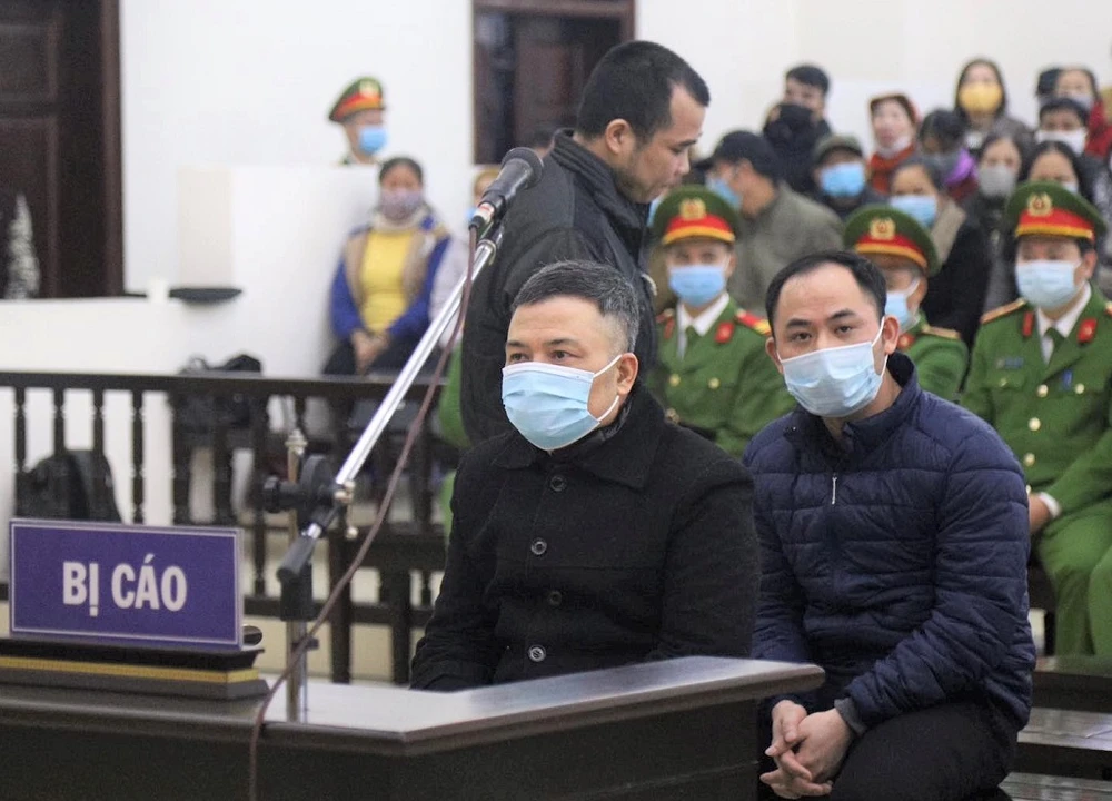 Bị cáo Lê Xuân Giang (hàng trên) tại tòa