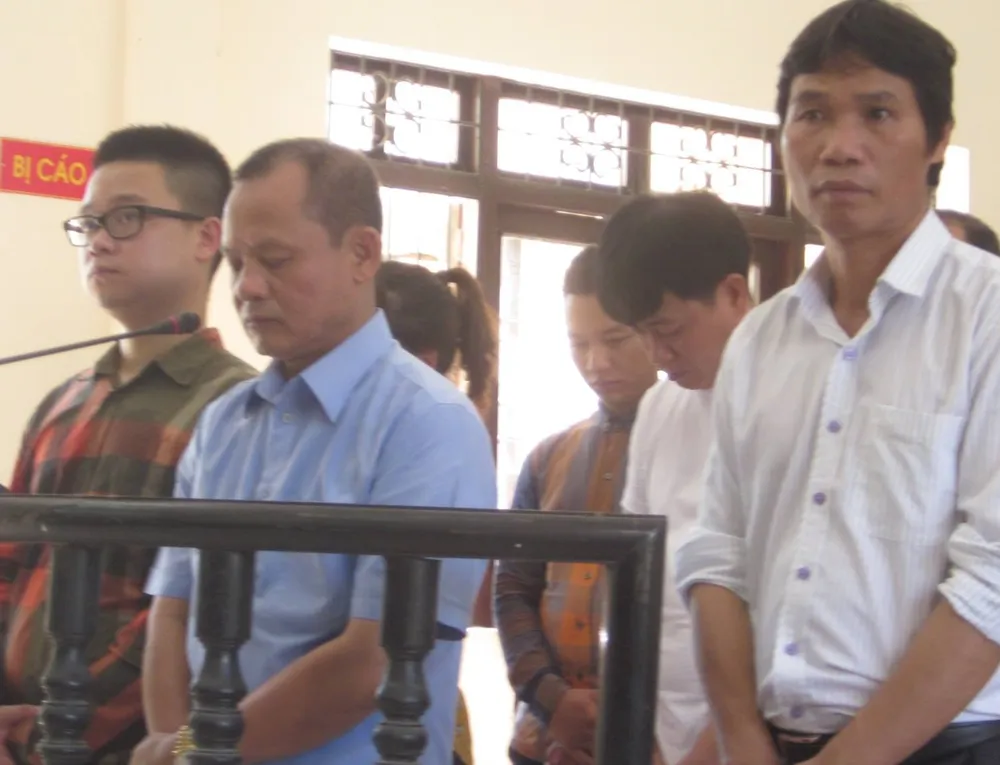 Minh "sâm" (áo xanh) cùng đồng bọn tại tòa.