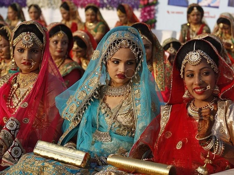 Các cô gái Ấn Độ tham gia lễ cưới theo nghi lễ truyền thống Kanyadaan. Ảnh: AP