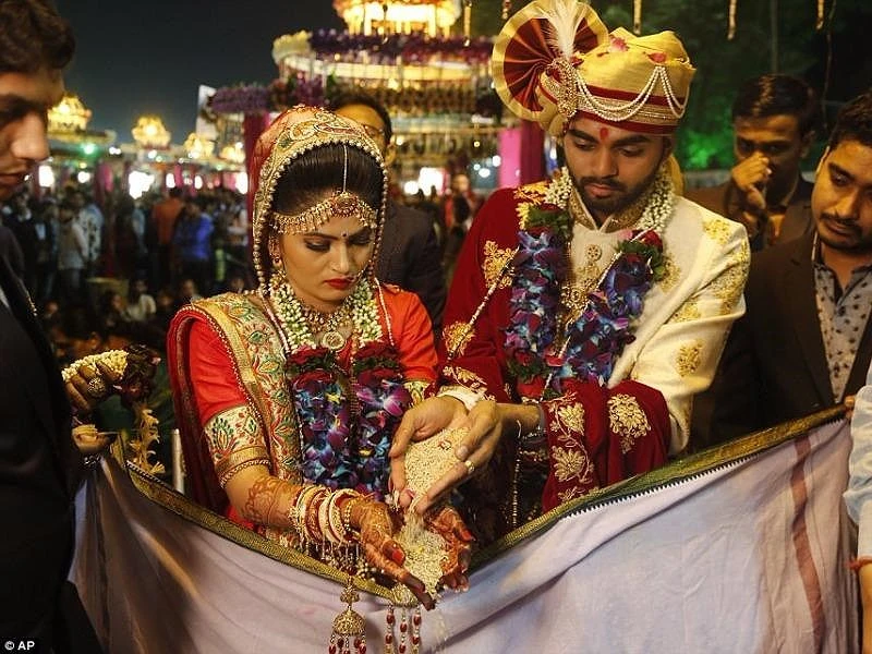 Ngày 24-12, hơn 250 cặp đôi ở Ấn Độ đã cùng trao lời thề vợ chồng trong một lễ kết hôn tập thể được tổ chức bởi một nhà buôn kim cương giàu có người Ấn, theo tờ Dailymail của Anh.