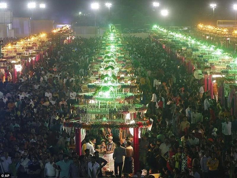 Hàng ngàn khách mời có mặt tại lễ kết hôn tập thể của 251 cô gái Ấn Độ. Ảnh: AP