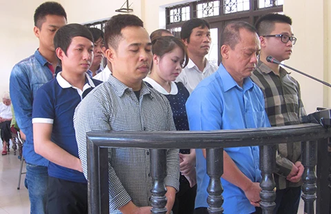 Minh “sâm” (ở giữa, hàng đầu) cùng các bị cáo tại tòa. Ảnh: TP