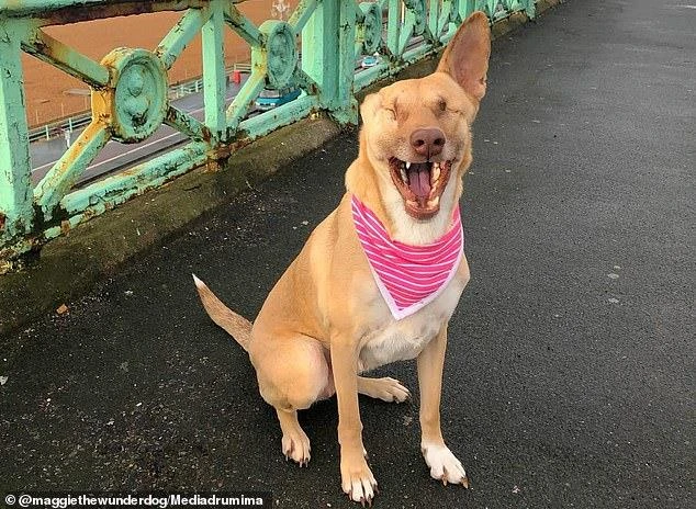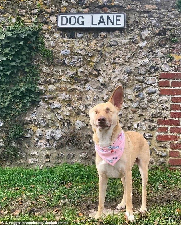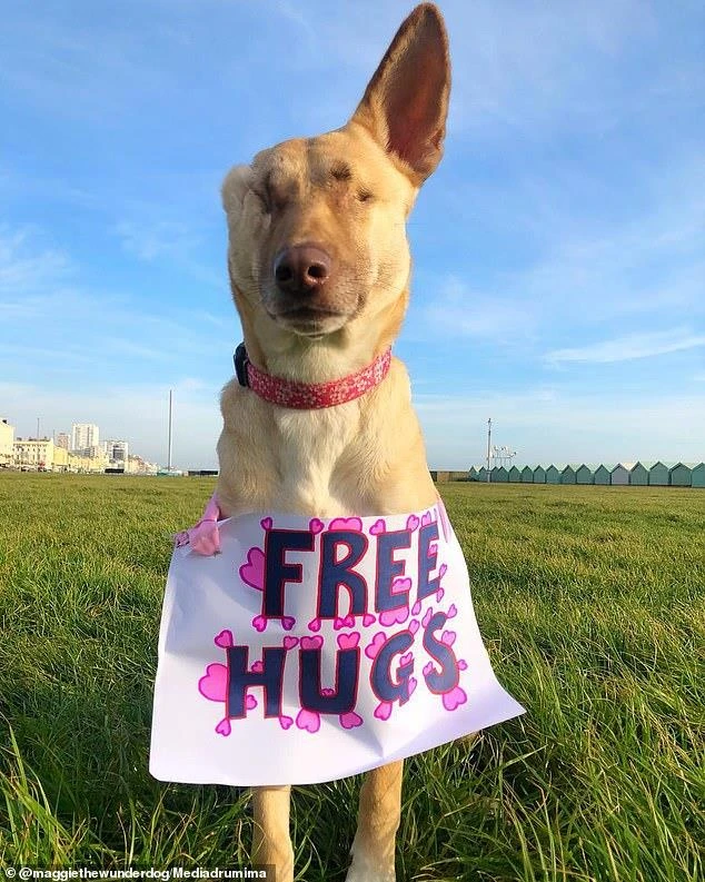 Dù bị cụt mất một tai và mù cả hai mắt nhưng Maggie rất yêu đời. Ảnh: INSTAGRAM