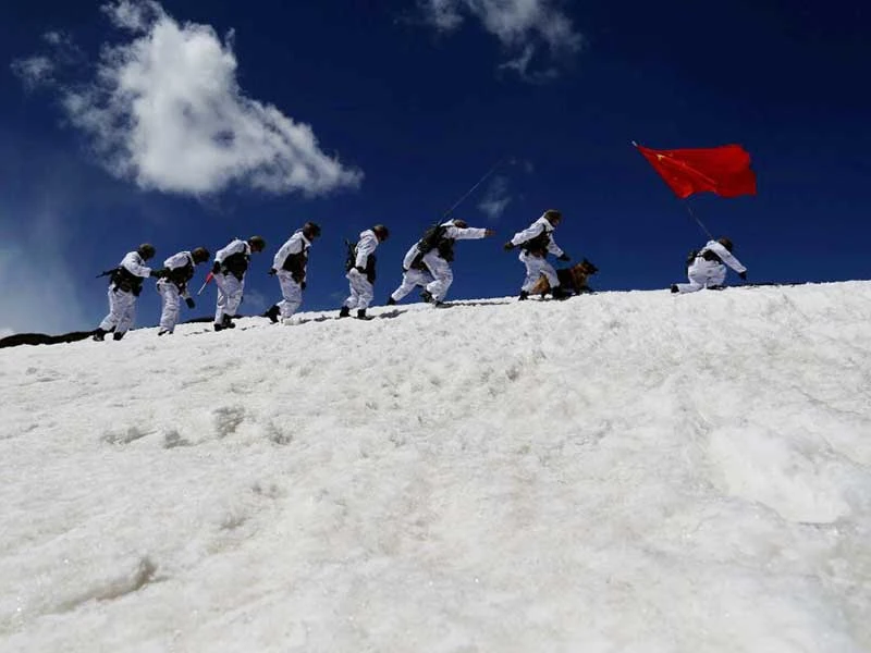 Một nhóm quân TQ tuần tra tại khu vực biên giới ở Ngari thuộc vùng tự trị Tây Tạng vào tháng 4-2017. Ảnh: REUTERS