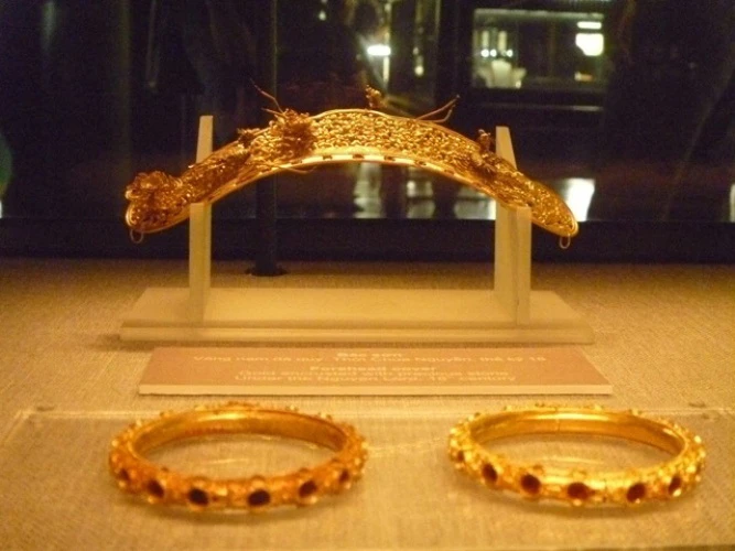 Đặc biệt buổi trưng bày đã giới thiệu bộ sưu tập đồ trang sức của hoàng gia thời Nguyễn, bao gồm từ thời chúa Nguyễn đến thời vua Nguyễn, có niên đại từ đầu thế kỷ 18 đến giữa thế kỷ 20. Đó là những chiếc trâm cài tóc bằng vàng được trang trí vô cùng tinh xảo; những chiếc bác sơn, vòng tay, nhẫn, hoa tai, thẻ bài, kim bội, kim khánh, ngọc bội, đai lưng bằng vàng, bạc hay ngọc quý được chế tác hết sức cầu kỳ; lại có những chiếc gương đồng, hộp phấn, khay đựng đồ trang sức bằng pháp lam rất độc đáo.