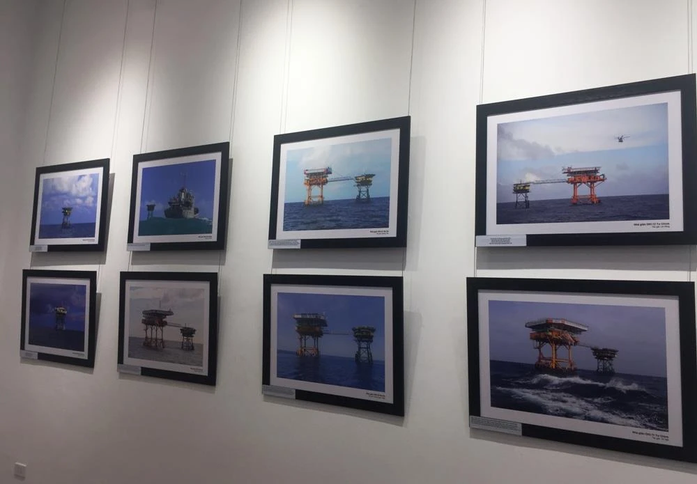 Điểm nhấn của triển lãm là hình ảnh đầy đủ về 15 Nhà giàn DK1 trên thềm lục địa phía Nam của Tổ quốc.