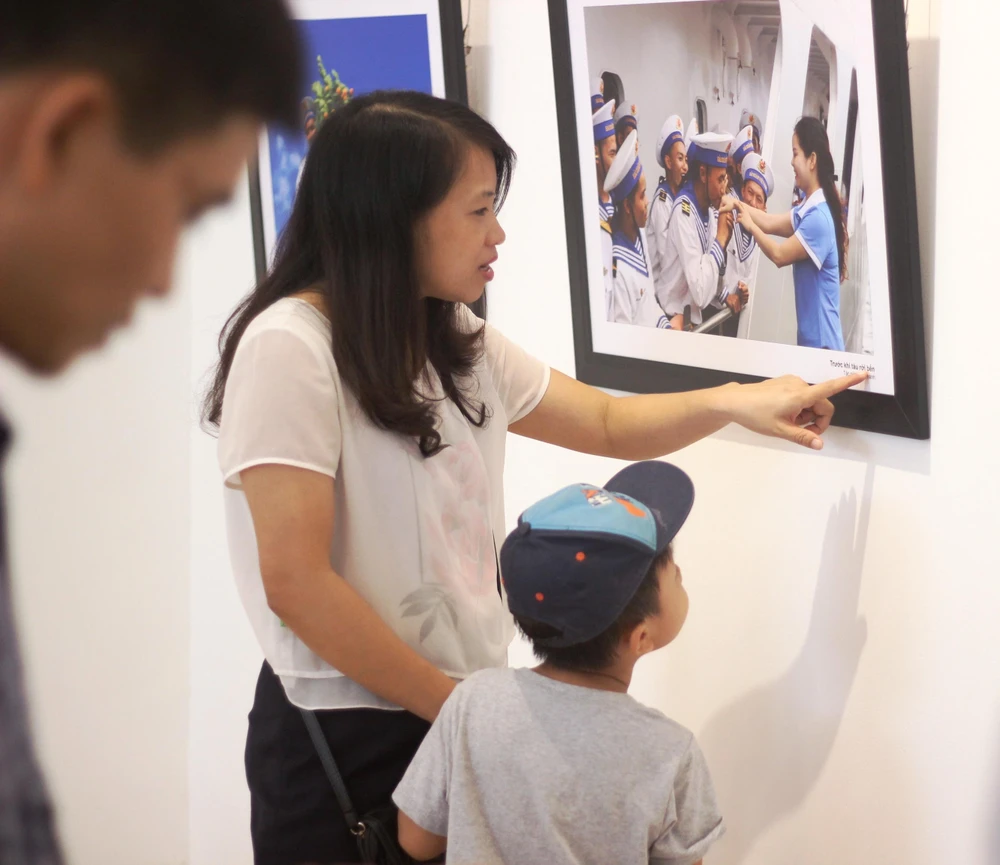 Bức ảnh Tiễn cha lên đường giữ đảo của tác giả Trần Thành được trưng bày tại triển lãm.