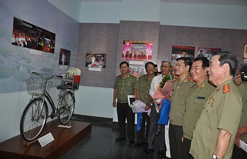 Đông đảo cán bộ, chiến sĩ ngành công an nhân dân đã đến xem triển lãm trong buổi khai mạc. Ảnh: HB