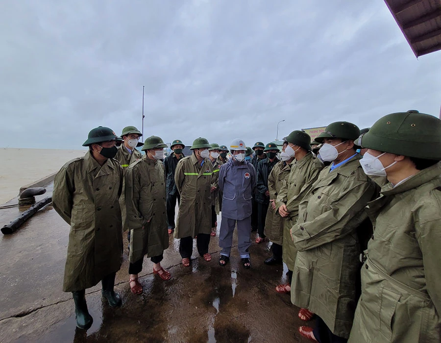 Bộ trưởng Bộ NN&PTNT Lê Minh Hoan cũng dẫn đầu đoàn công tác đi kiểm tra công tác ứng phó với bão số 8 tại tỉnh Hà Tĩnh, Nghệ An. Ảnh: AH