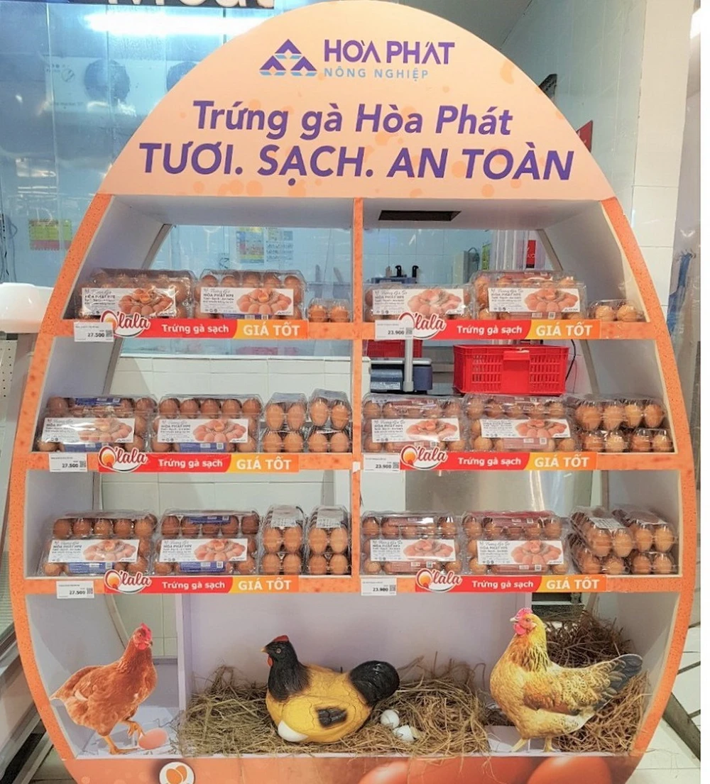 Tại Hà Nội, Hòa Phát đang cung cấp trứng gà sạch vào hơn 100 siêu thị, cửa hàng: Vinmart, Co.opmart, Hapromart, Haprofood, Seikamart, Fujimart, Intimex, BRG InterShop, K.Mart/T.Mart.