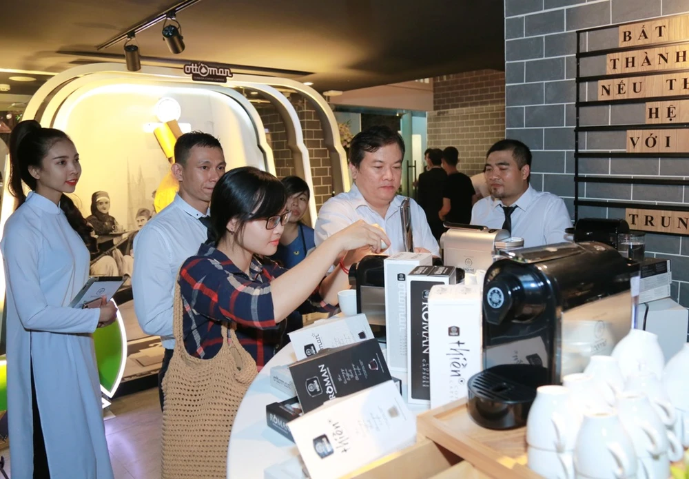 Người tiêu dùng đang dùng thử máy và sản phẩm viên nén vừa ra mắt