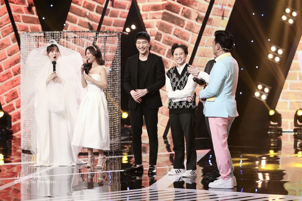 Trường Giang thản nhiên lên sân khấu “lật váy” của nữ ca sĩ và thắc mắc: “Tại sao đi tham gia gameshow mà mang dép vậy”. Tình huống này khiến ba người chơi và khán giả được phen cười lăn lộn.
