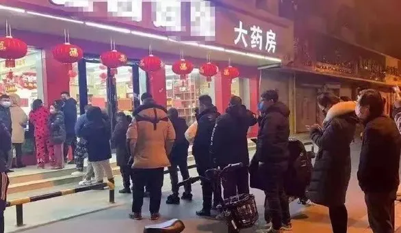 Hàng người xếp hàng chờ mua thuốc Song Hoàng Liên. Ảnh: WEIBO