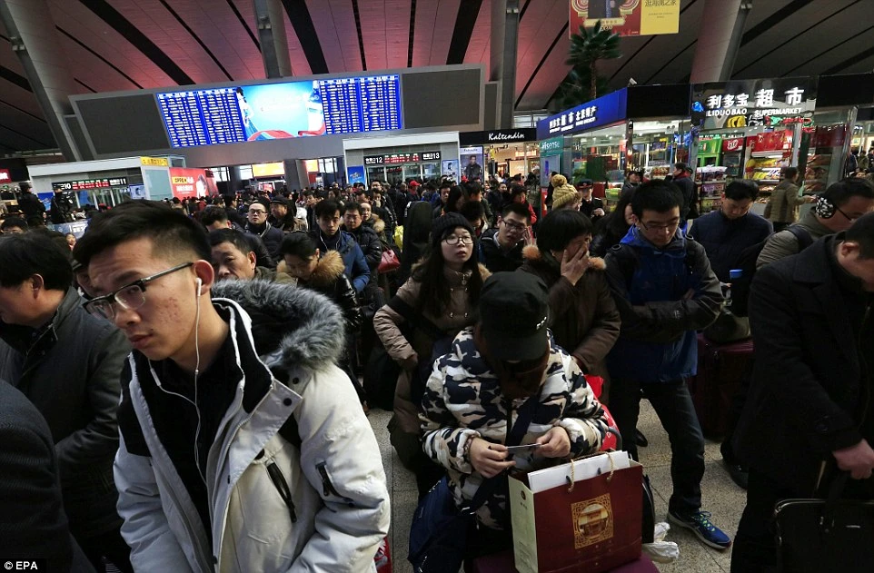 Đây là khoảng thời gian cao điểm của năm khi hàng triệu người đổ xô về quê ăn Tết Nguyên đán. Đối với nhiều người mưu sinh ở những nơi xa xôi, đây là cơ hội duy nhất để họ đoàn tụ gia đình trong cả năm qua. Kỳ nghỉ xuân tại Trung Quốc kéo dài khoảng 40 ngày và sẽ kết thúc vào ngày 3-3 (dương lịch).