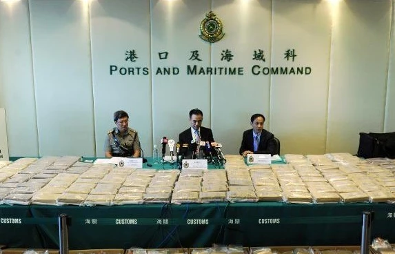 Cơ quan hải quan đưa ra các gói ma túy bắt giữ được trong buổi họp báo tại Hồng Kông