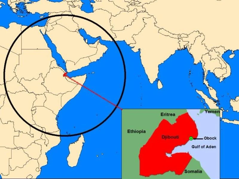 Djibouti tọa lạc tại cổng vào phía Nam của biển Đỏ. Quốc gia này nằm giữa Ethiopia, Eritrea và Somalia. Đây cũng là nơi có các căn cứ của Mỹ, Nhật và Pháp đóng.