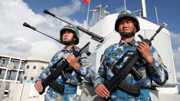 Bộ Ngoại giao Trung Quốc trước đó đã nhấn mạnh căn cứ mới được xây dựng sẽ nhằm mục đích cung cấp cơ sở vật chất và sự hỗ trợ tốt hơn cho binh sĩ trên các tàu của Trung Quốc. Tuy nhiên, theo các quan chức quốc phòng của Mỹ, cái mà Trung Quốc xây dựng, thực chất là các căn cứ quân sự.